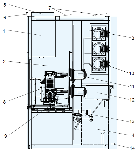 5、控制小母線室    6、用途眉頭      7、泄壓通道    8、斷路器