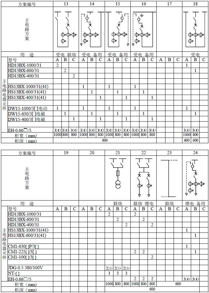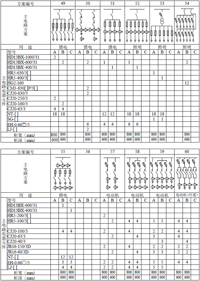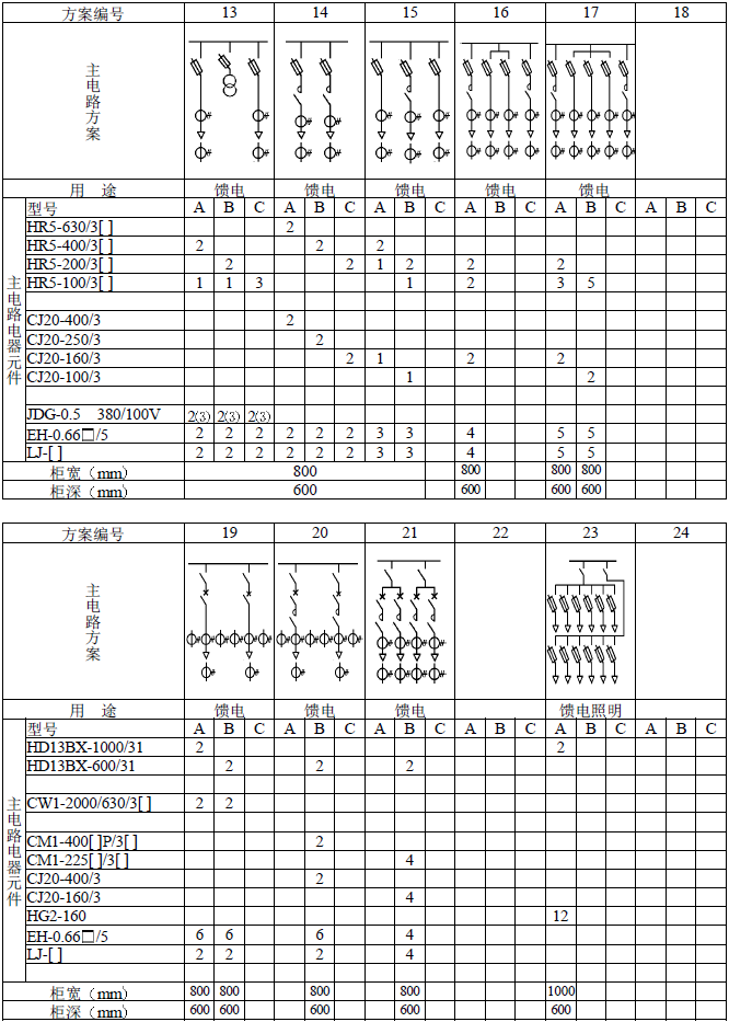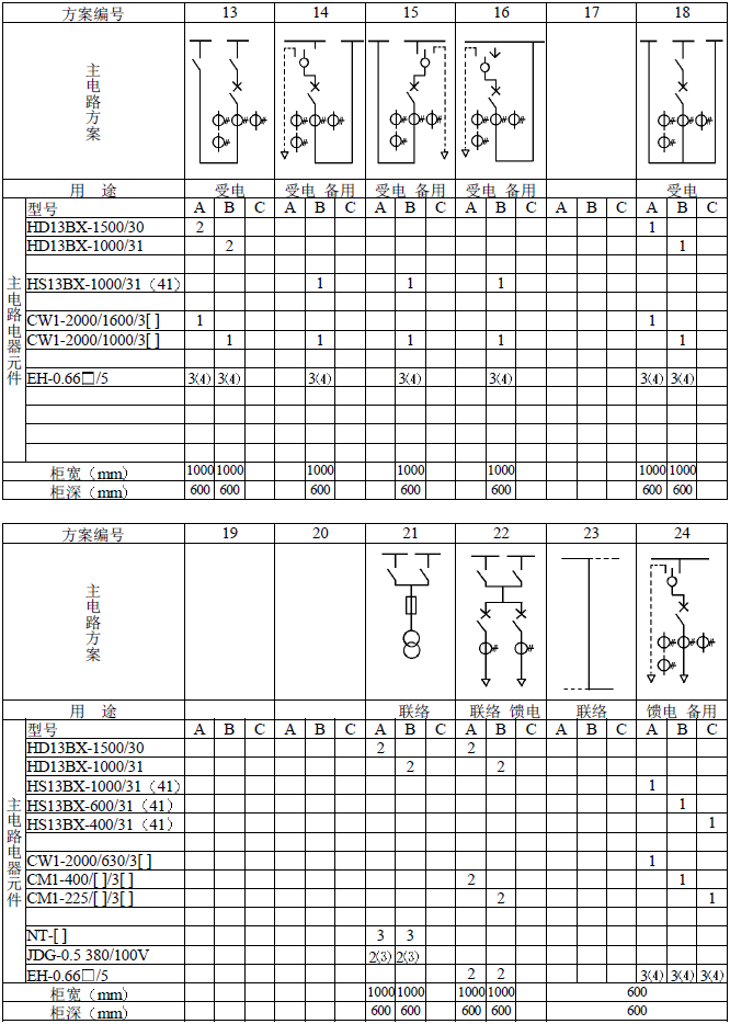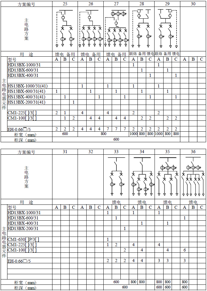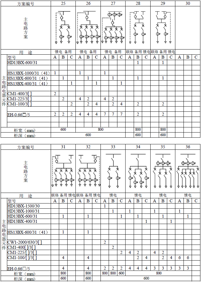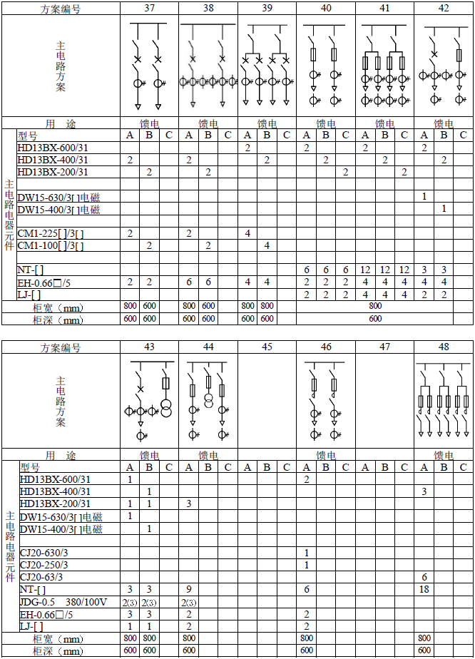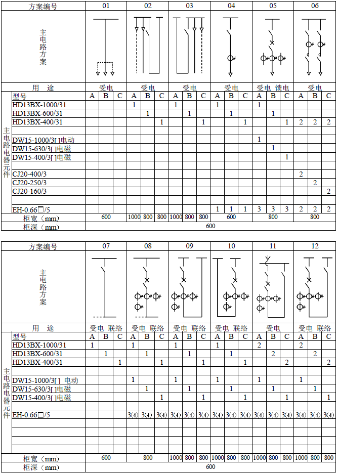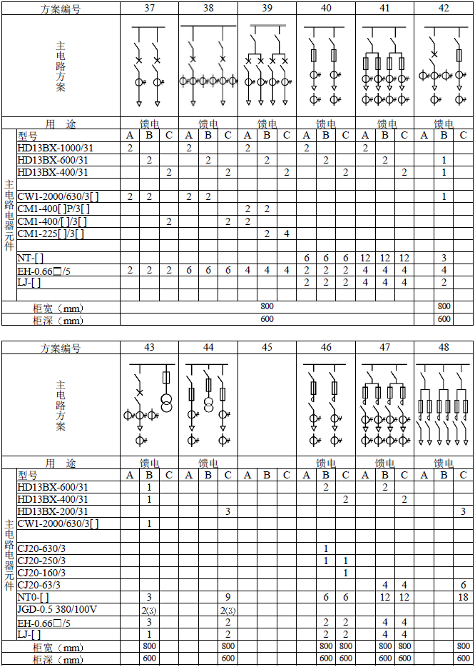 主電路方案是征求了廣大設計、使用部門的意見選編的,增加了發電廠需要的方案。額定電流增加到3150A,適合2000KV以下的配電變壓器選用。